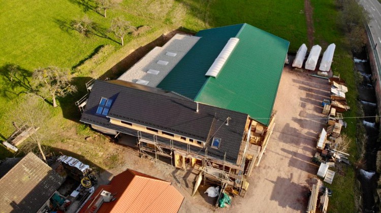 Auch unsere eigene Baustelle nimmt immer mehr Form an. Mit dem Umbau wird das bestehende Werk und die vorhandenen Büroräume erweitert und somit für weitere Mitarbeiter Platz geschaffen. Nachdem die Wände aufgerichtet waren, wurden Lignatur Elemente als sichtbare Dachkonstruktion verlegt. Nun müssen die Wände gedämmt und die Fenster eingebaut werden, bevor es mit dem Innenausbau weitergehen kann.